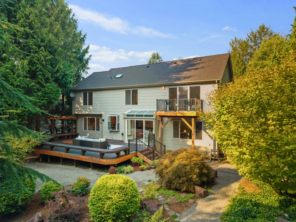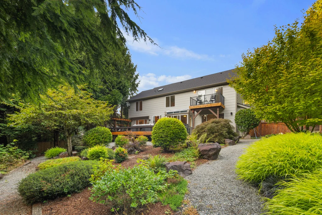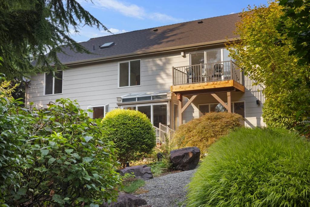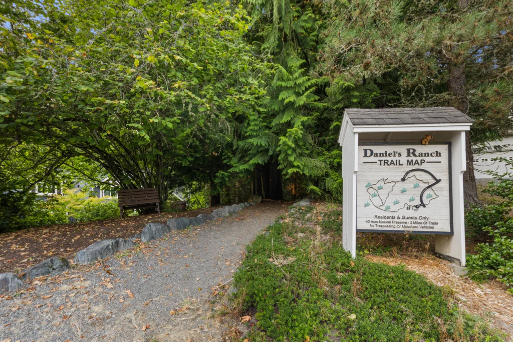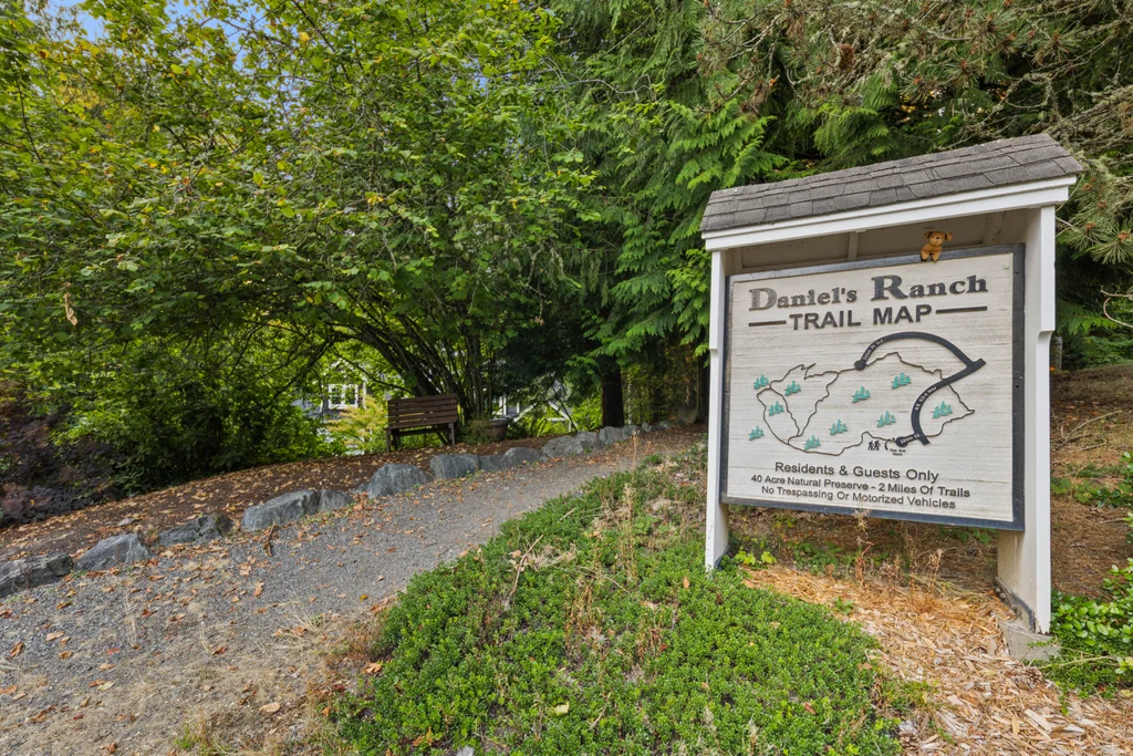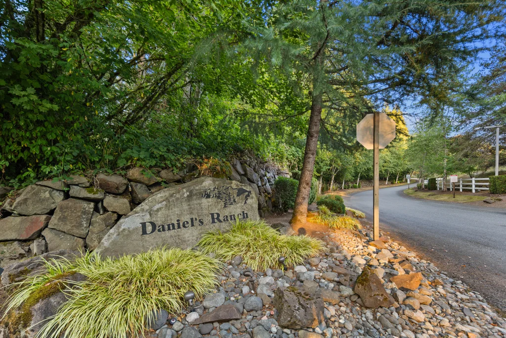 Welcome to Daniel’s Ranch, a rare enclave where quality craftsmanship and community come together. This 4-bedroom, 2.5-bath home offers 2,840sqft of light-filled living with vaulted ceilings and walls of windows. The main floor features open living and dining rooms, a den with built-ins, and two gas fireplaces. Upstairs, the primary suite includes a spacious bath, walk-in closet, and private deck. Step outside to a backyard oasis with its own trail network, mature plantings, stonework, ponds, and water features. An expansive Ironwood deck, plumbed for gas, is perfect for entertaining. With just 64 homes on oversized lots, Daniel’s Ranch offers privacy, natural beauty, and a strong sense of community. Stately and serene, yet close to it all.