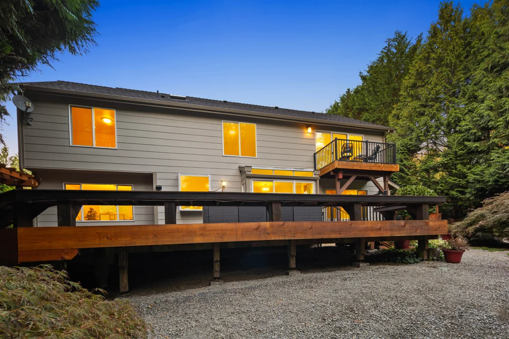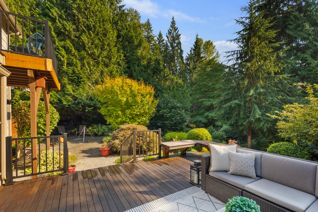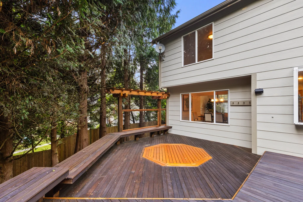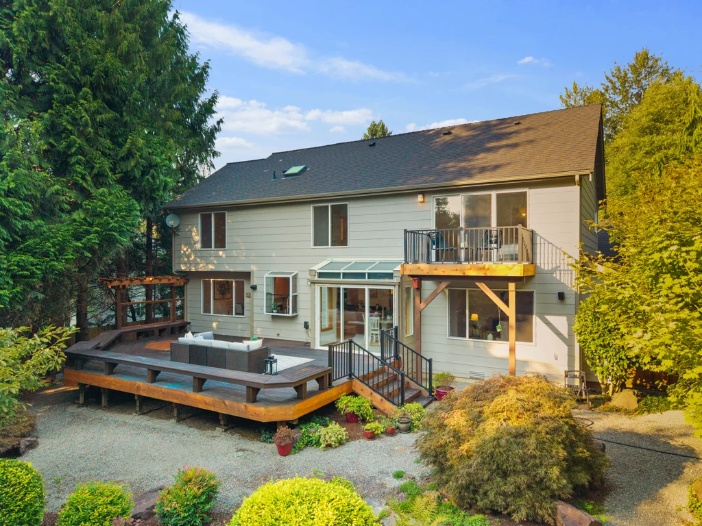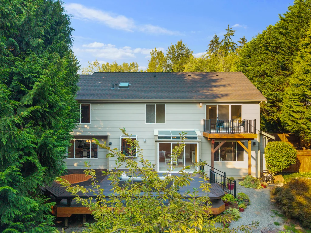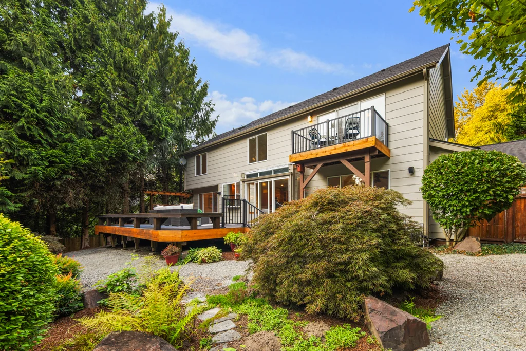 Welcome to Daniel’s Ranch, a rare enclave where quality craftsmanship and community come together. This 4-bedroom, 2.5-bath home offers 2,840sqft of light-filled living with vaulted ceilings and walls of windows. The main floor features open living and dining rooms, a den with built-ins, and two gas fireplaces. Upstairs, the primary suite includes a spacious bath, walk-in closet, and private deck. Step outside to a backyard oasis with its own trail network, mature plantings, stonework, ponds, and water features. An expansive Ironwood deck, plumbed for gas, is perfect for entertaining. With just 64 homes on oversized lots, Daniel’s Ranch offers privacy, natural beauty, and a strong sense of community. Stately and serene, yet close to it all.