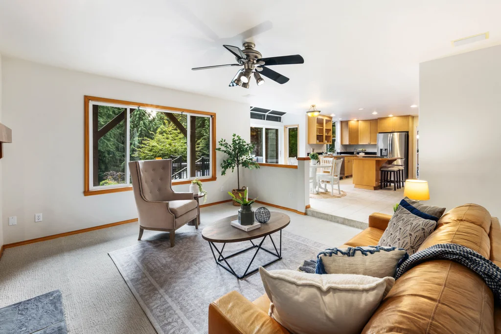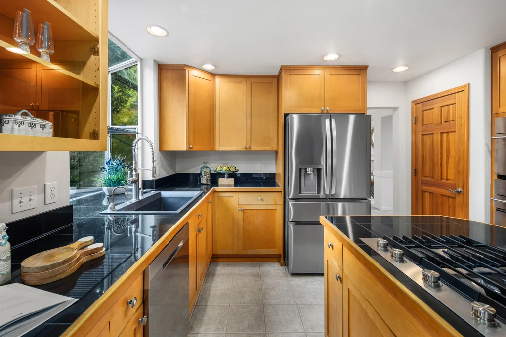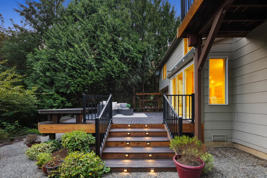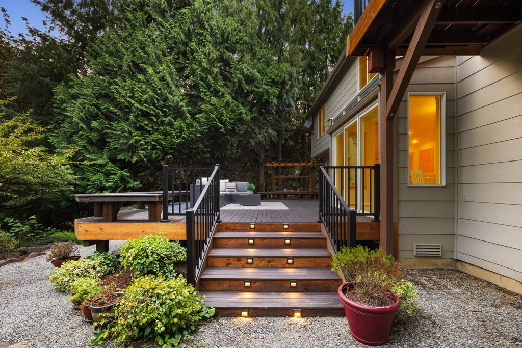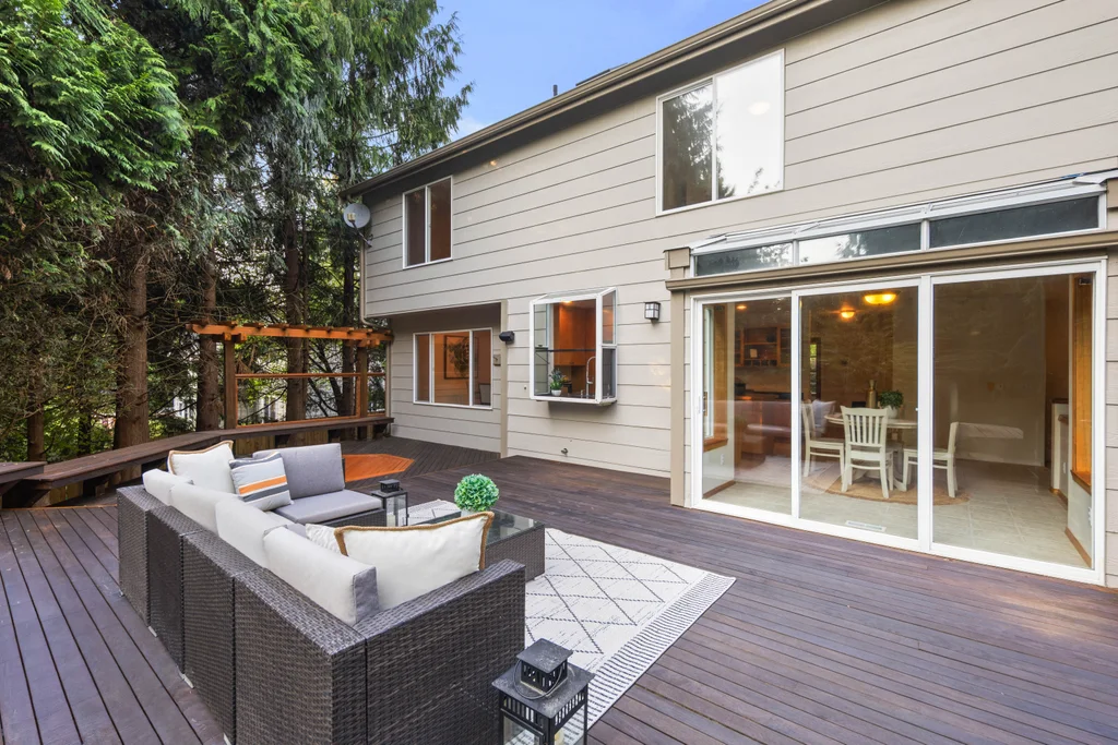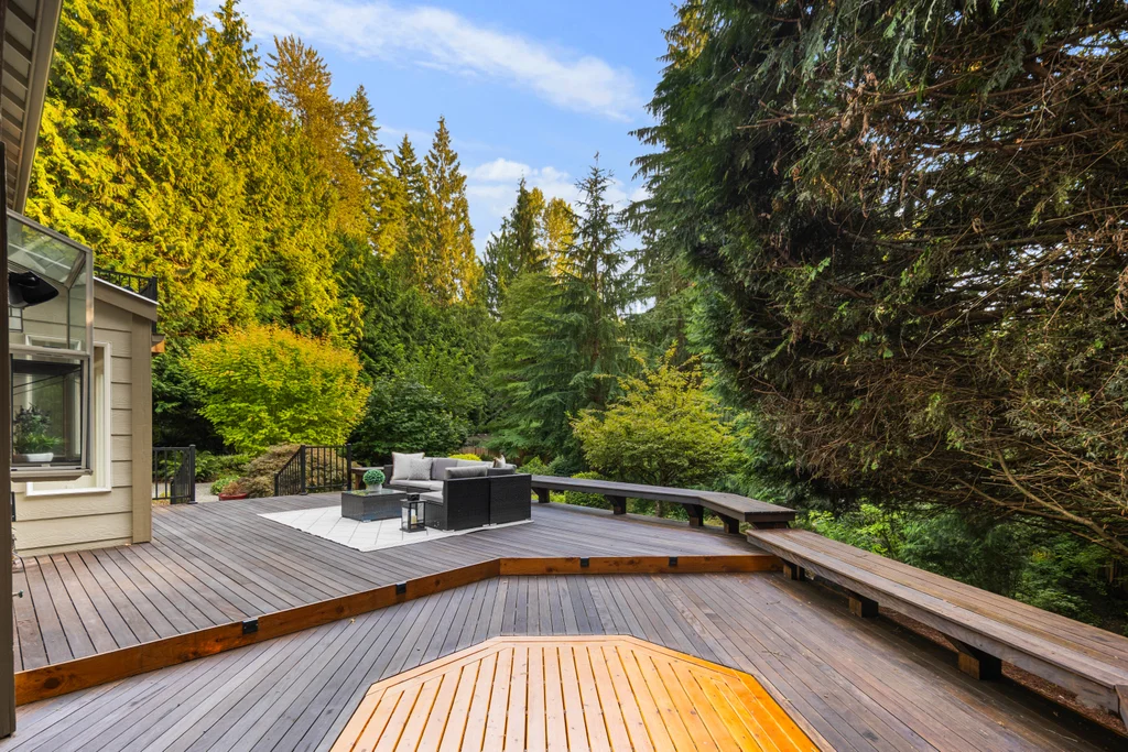 Welcome to Daniel’s Ranch, a rare enclave where quality craftsmanship and community come together. This 4-bedroom, 2.5-bath home offers 2,840sqft of light-filled living with vaulted ceilings and walls of windows. The main floor features open living and dining rooms, a den with built-ins, and two gas fireplaces. Upstairs, the primary suite includes a spacious bath, walk-in closet, and private deck. Step outside to a backyard oasis with its own trail network, mature plantings, stonework, ponds, and water features. An expansive Ironwood deck, plumbed for gas, is perfect for entertaining. With just 64 homes on oversized lots, Daniel’s Ranch offers privacy, natural beauty, and a strong sense of community. Stately and serene, yet close to it all.